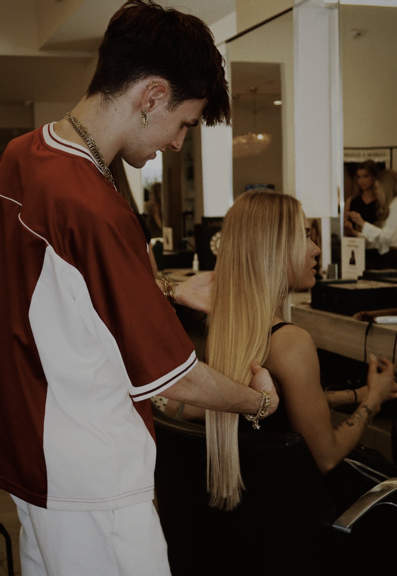 Tape-In Extensions deliver instant length and volume with a lightweight, comfortable feel. These ultra-thin adhesive panels are strategically placed to blend seamlessly into the natural hair, creating a smooth and undetectable finish. Tape-ins are perfect for clients who want a fast, versatile extension method that offers beautiful movement and easy maintenance while still delivering dramatic transformation.