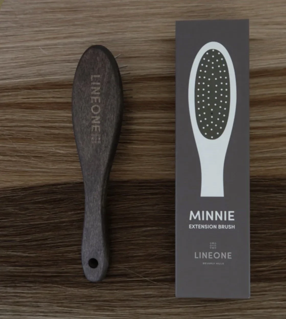 The (new and improved) MINNIE Brush. Signature extension brush, but elevated. Now designed with gentler metal bristles that glide through extensions without pulling. MINNIE is the compact, elevated essential. The ultimate extension brush on the go